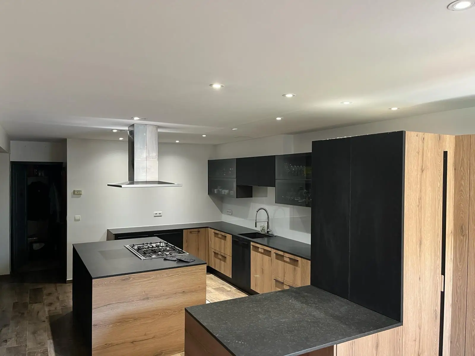 Pour ce projet, le choix s’est porté sur le modèle GRANIT LIFESTYLE 30 – 122 × 18 cm (réf. L30G278L9 – Quercus Gris – 5mm clipsable avec sous couche intégrée), un sol LVT au rendu contemporain qui reproduit l’aspect du matériau naturel avec réalisme. Son format allongé contribue à agrandir visuellement l’espace tout en apportant une finition élégante et harmonieuse.