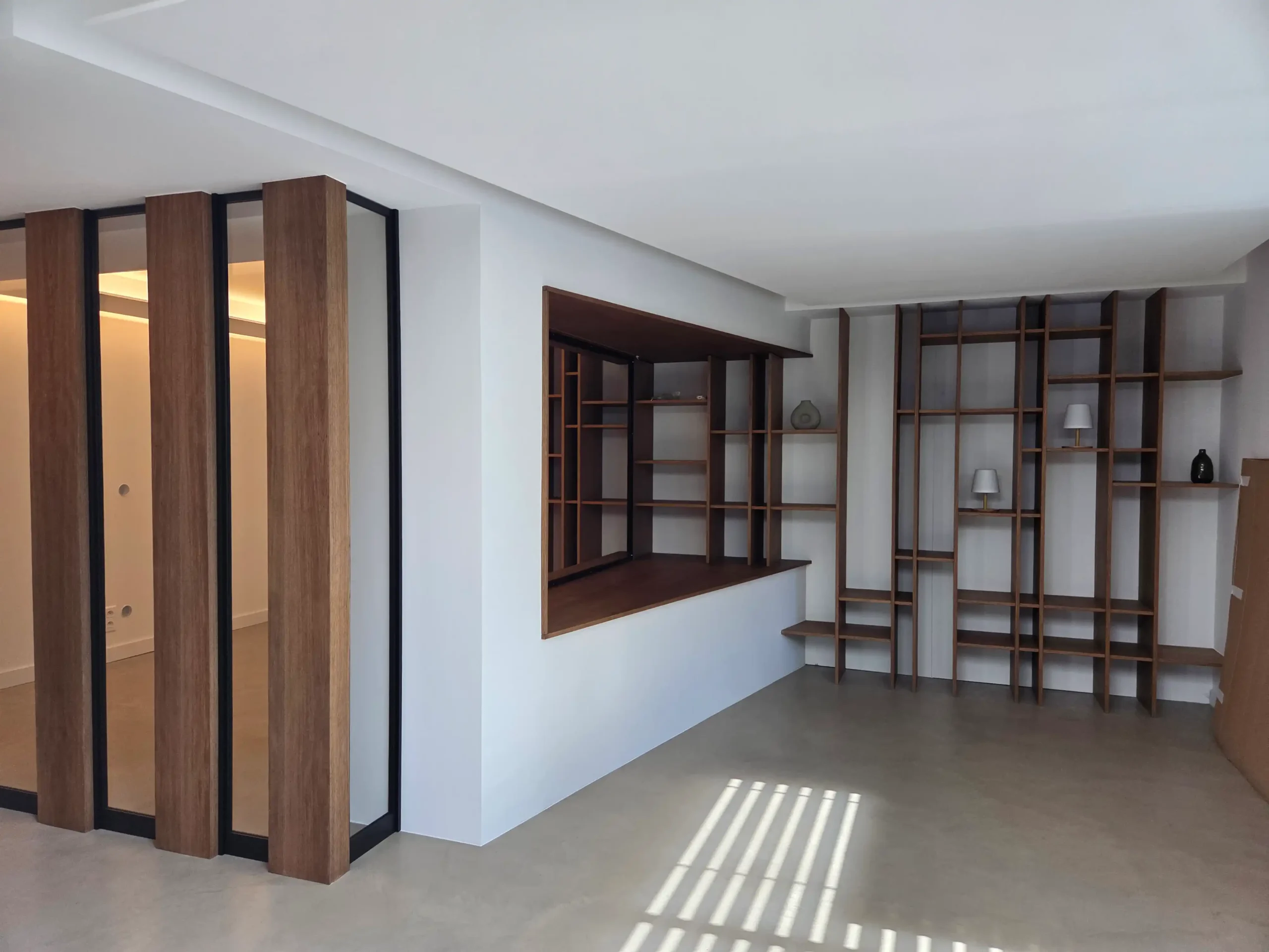 Dans le cadre de cette rénovation, le client a souhaité fermer un espace initialement ouvert afin de redéfinir les volumes et d’apporter une structure plus affirmée et harmonieuse à l’ensemble.